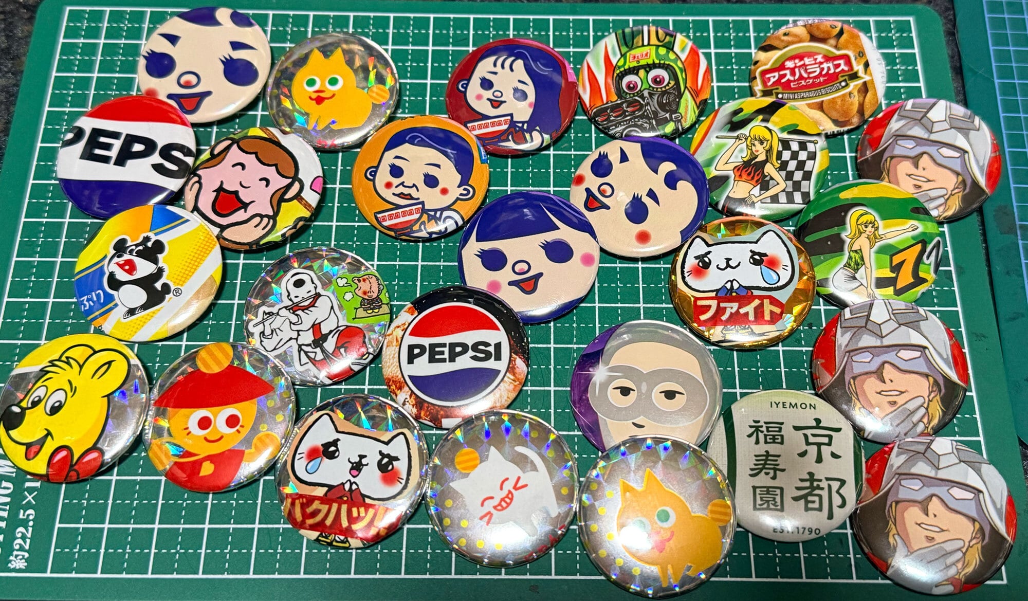 駄コラシールという文化がありまして、いろんな印刷物をコラージュしてオリジナルシールにするんですが、それの缶バッチバージョン!駄菓子のパッケージのサンプリングから生まれる駄コラ缶バッチ!そのルーツを探る楽しさと、切り抜かれたデザインの可愛さを身につけよう!